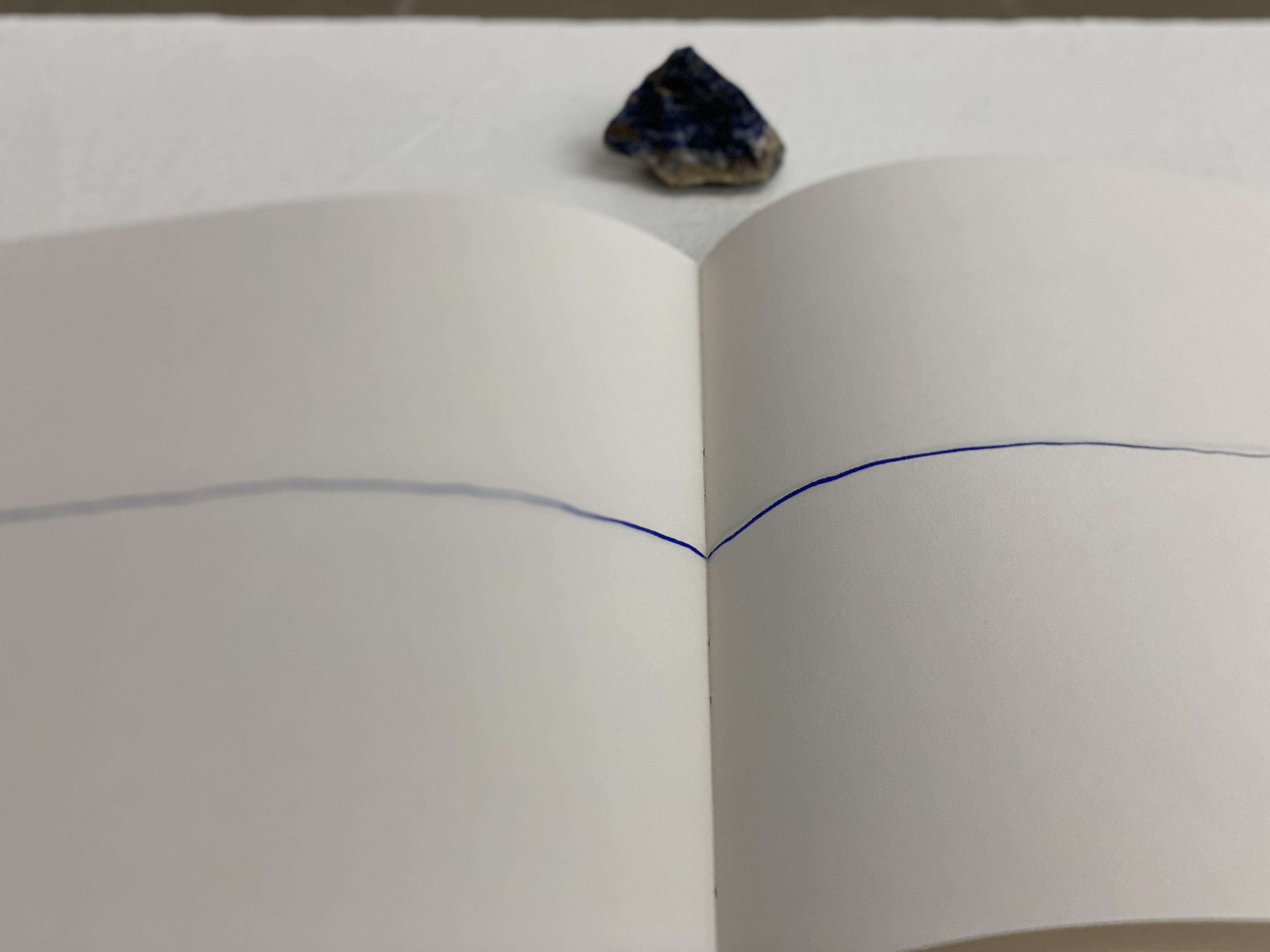 ”Lifeline” 03, Breathing manuscript in a book n.03, sodalite stone, 2022,
